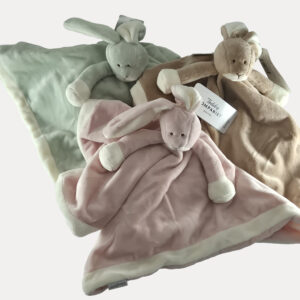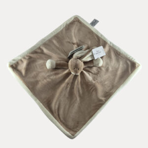 Αυτό το κομμψό προσωποποιημένο πανάκι παρηγοριάς σε σχήμα λαγουδιού, σε ζεστό καφέ χρώμα με λευκές λεπτομέρειες, έχει σχεδιαστεί για να προσφέρει άνεση, ασφάλεια και συναισθηματική σύνδεση στα πρώτα στάδια της ζωής ενός παιδιού. Ιδανική τόσο για στιγμές παιχνιδιού όσο και για ξεκούραση και ύπνο.