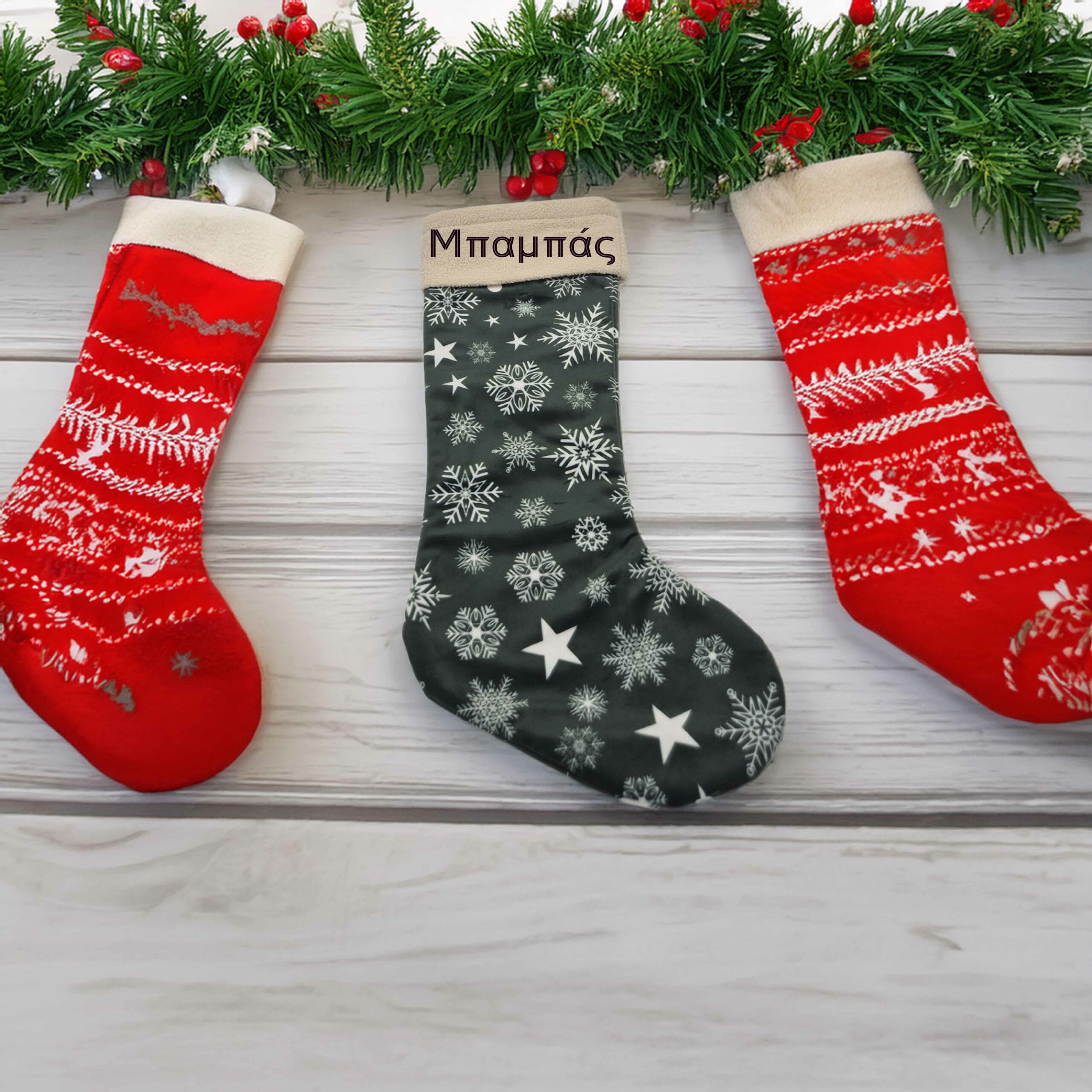 Προσωποποιημένη Χριστουγεννιάτικη κάλτσα πράσινα στολίδια