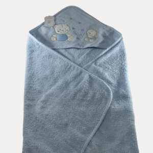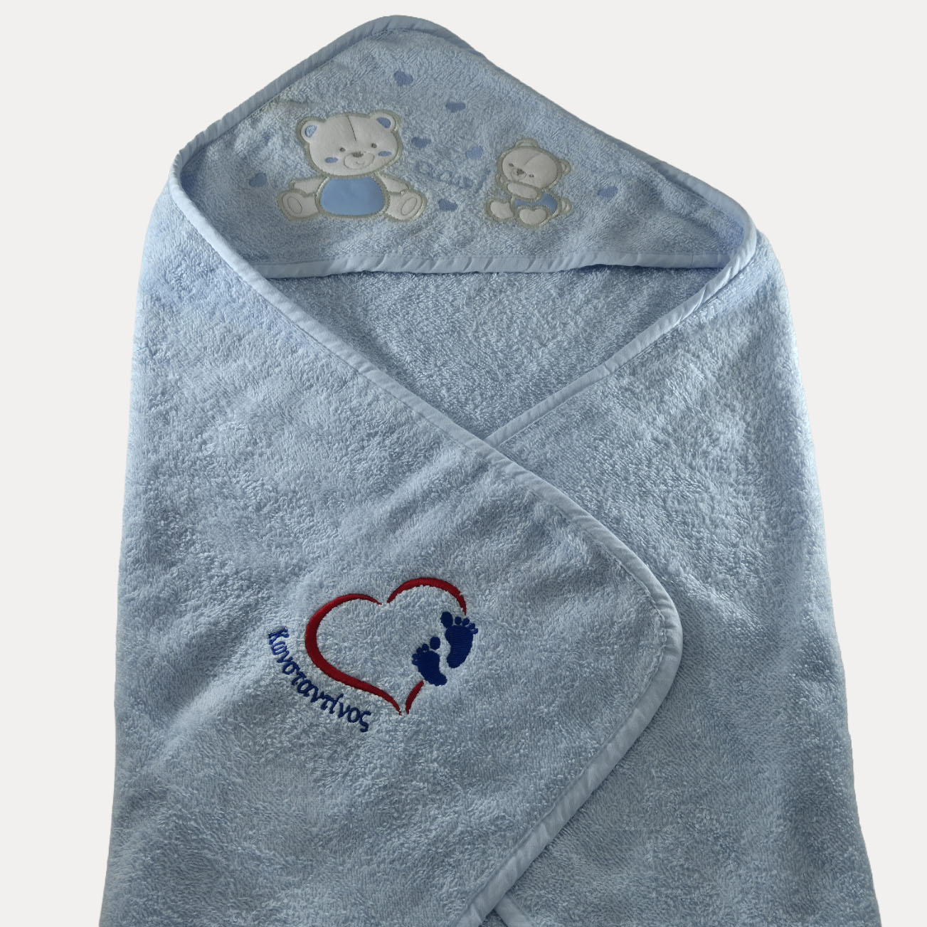 Το γαλάζιο προσωποποιημένο βρεφικό μπουντούζι με κέντημα & ονομα BEBE BEAR είναι η πιο γλυκιά επιλογή για μετά το μπάνιο. Μαλακό, απορροφητικό και σχεδιασμένο για να αγκαλιάζει τρυφερά το μωρό σας, προσφέρει ζεστασιά και άνεση από την πρώτη στιγμή.